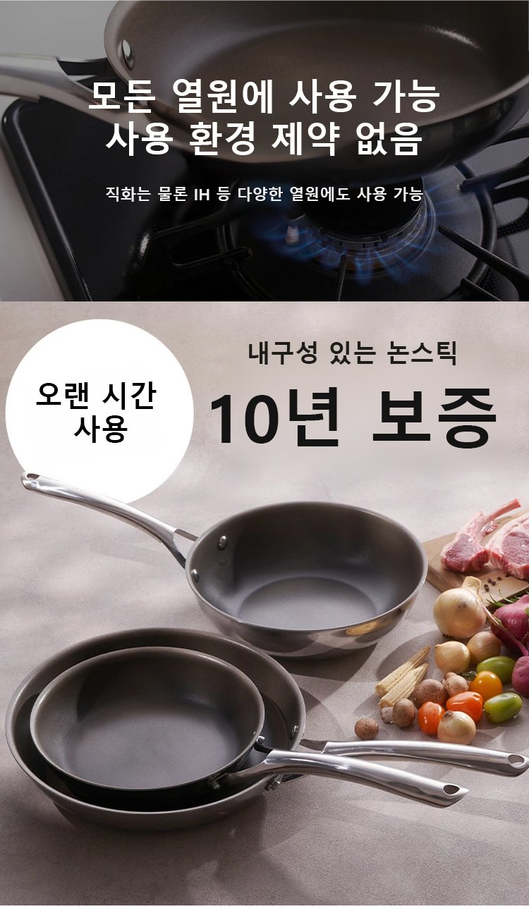 티타늄 재질 무코팅 논스틱 프라이팬 가정용 평저팬