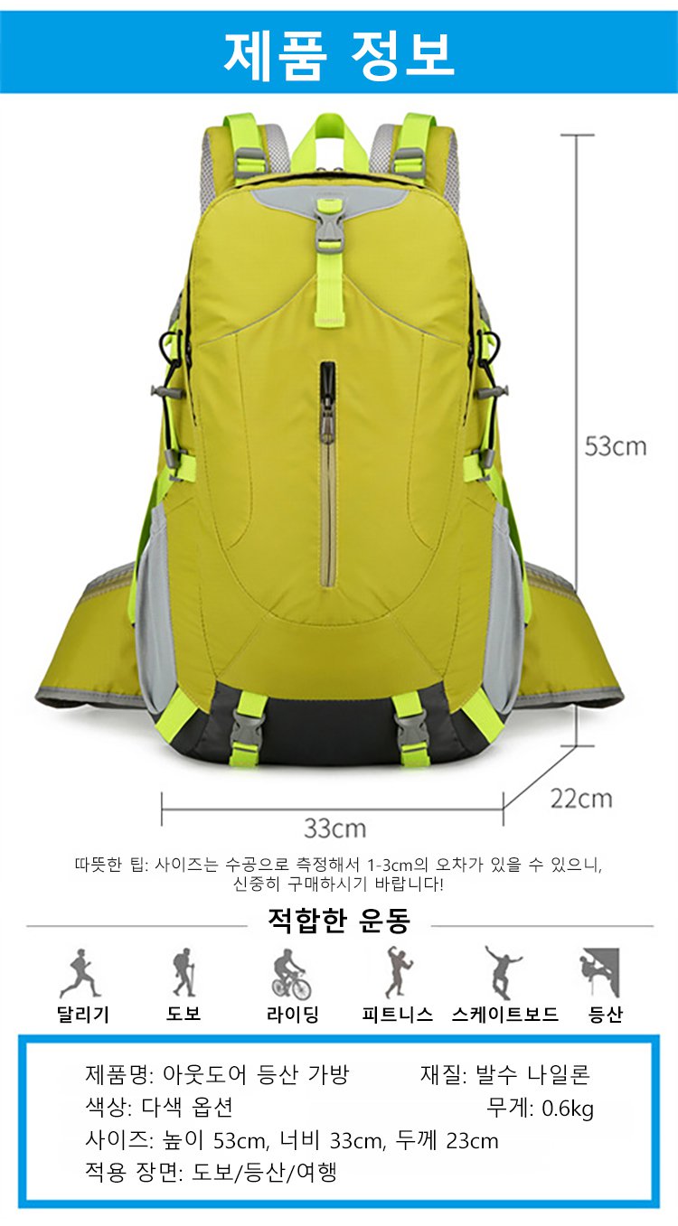 남녀공용 대용량 아웃도어 방수 등산 가방