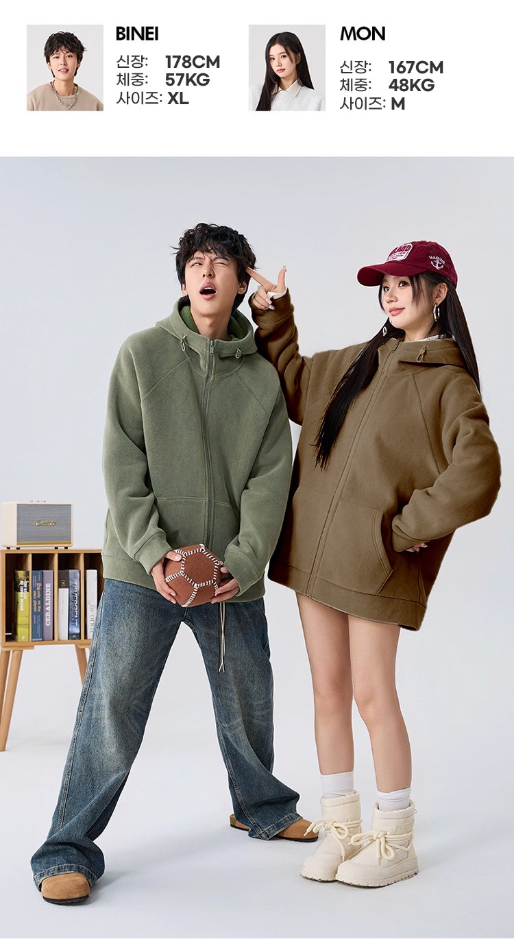 【30도 온도 상승 방풍 기능】양면 플리스 후드 재킷